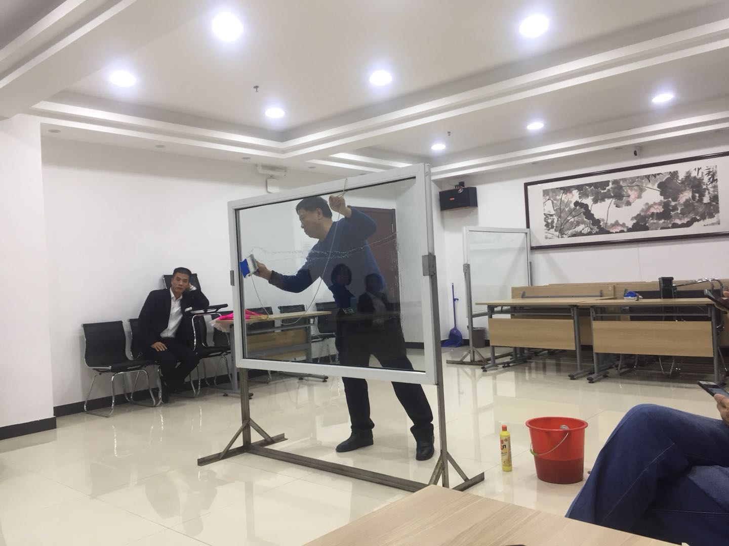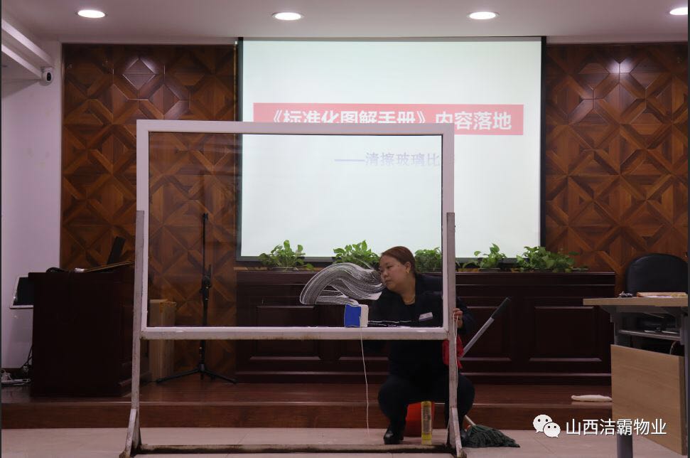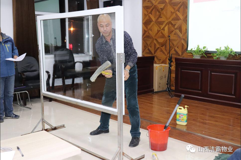 為提高公司管理人員基礎技能,潔霸公司利用周四內部員工培訓的時間組織了一次系統(tǒng)的內部管理人員檫玻璃培訓,隨后并進行了以組為單位的檫玻璃競賽。