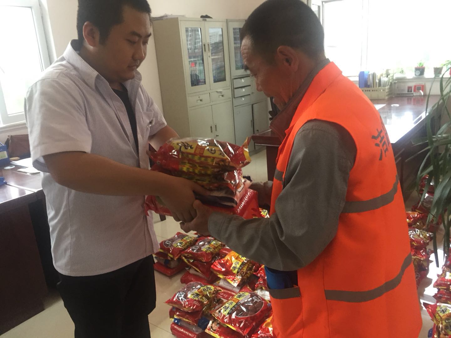 端午節(jié)來(lái)臨之際,為弘揚(yáng)傳統(tǒng)文化,我公司按照傳統(tǒng)習(xí)俗為環(huán)衛(wèi)工準(zhǔn)備了節(jié)日禮品。濃濃棕香,綿綿情長(zhǎng)。6月5日下午,在一年一度的端午佳節(jié)來(lái)臨之際,一袋袋香香的糯米、大大的紅棗、白糖、冰糖飽含著公司關(guān)愛(ài)和祝福的端陽(yáng)節(jié)福利由公司領(lǐng)導(dǎo)親自發(fā)放到為美化城區(qū)大街小巷作出默默奉獻(xiàn)的公司環(huán)衛(wèi)工人手中。