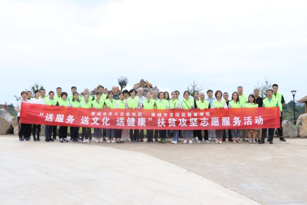 此次活動由晉城市市場監(jiān)督管理局和市非公企業(yè)黨委領(lǐng)導帶隊,非公黨委下屬的潔霸清潔、神利電器、隆泰實業(yè)、龍谷倉等九個支部的黨員志愿者30余人參加,活動旨在關(guān)愛弱勢群體,提供志愿服務(wù),弘揚黨員志愿者精神,切實發(fā)揮文明單位的引領(lǐng)示范作用,送文化和健康下鄉(xiāng),助力晉城市扶貧攻堅行動。