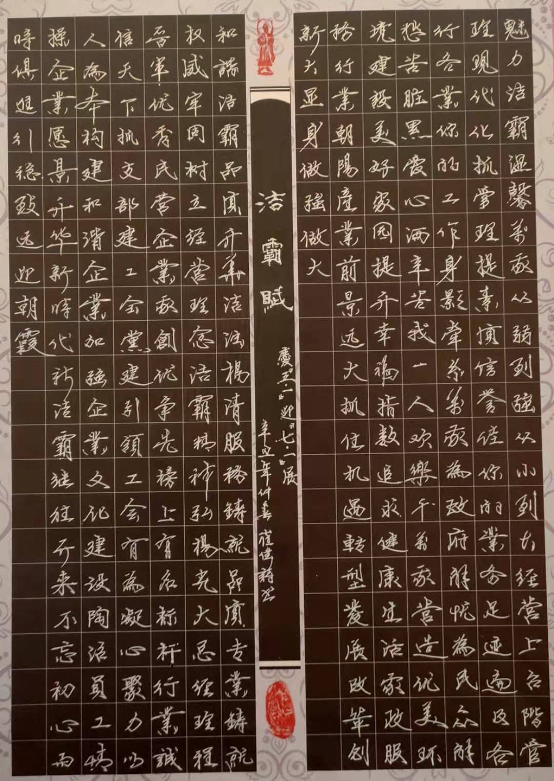 本次硬筆書法比賽活動圍繞“喜迎建黨百年華誕”主題,以摘抄歌頌黨、歌頌祖國、歌頌企業(yè)的詩詞、散文、歌賦等為書寫內(nèi)容,參賽選手個個滿懷激情,用心書寫每一個漢字,筆畫流暢,結(jié)構(gòu)勻稱,整體美觀,表現(xiàn)出良好的書寫功底。公司組織相關(guān)人員對參賽員工的作品進(jìn)行客觀公正的評審,評選出一、二、三等獎若干名。