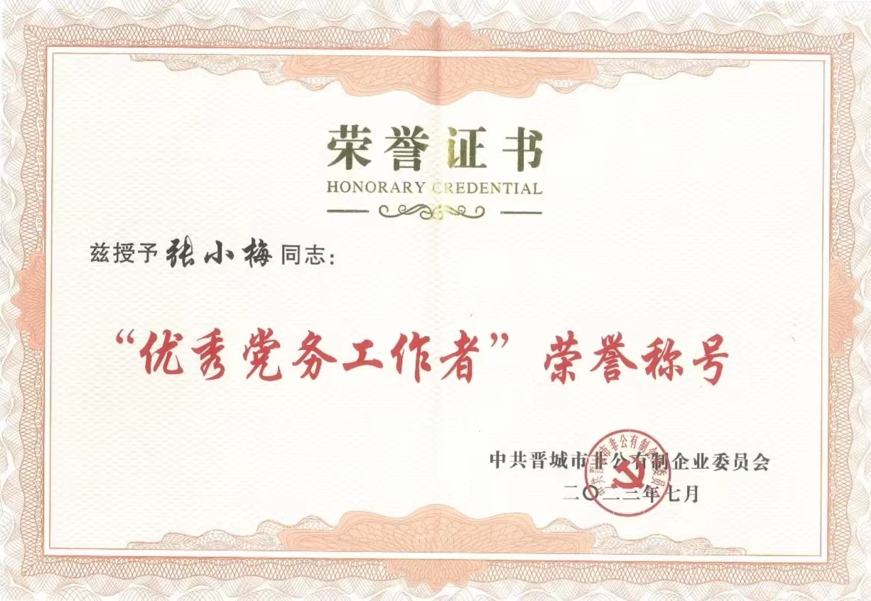 此次被市非公企業(yè)黨委授予“先進基層黨組織”稱號,是公司黨支部連續(xù)第五年獲得此項殊榮。近年來,公司黨支部堅持黨建引領,抓陣地,建機制,壯隊伍,提素質,設立黨員示范崗、示范區(qū),廣泛開展“戴黨徽、亮身份、樹形象”活動,持續(xù)推進黨建與生產經(jīng)營深度融合,真正賦能企業(yè)高質量發(fā)展。公司先后榮膺省、市級授予的“守合同重信用單位”“巾幗創(chuàng)業(yè)基地”“家政服務先進單位”“商貿流通工作先進單位”“山西省‘四新’中小企業(yè)”“晉城市模范單位”等榮譽稱號。等殊榮,公司黨支部分別獲得“‘雙強六好’省級示范黨組織”“‘雙強六好’市級示范黨組織”晉城市基層黨組織規(guī)范化建設示范點”等榮譽稱號。 |