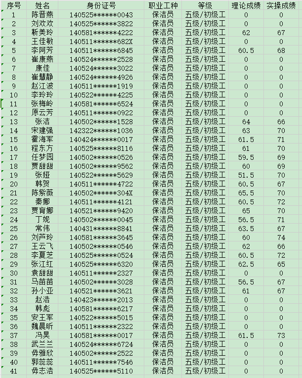 晉城市潔霸清潔服務股份有限公司職業(yè)技能等級認定中心現將2024年8月4日認定人員成績公示如下: