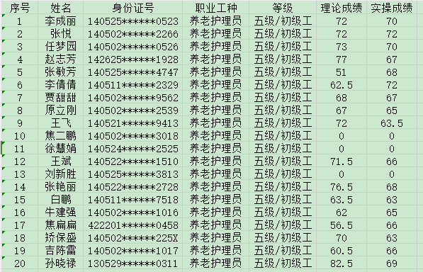 2024年8月25日第31批養(yǎng)老護(hù)理員初級認(rèn)定人員成績公示