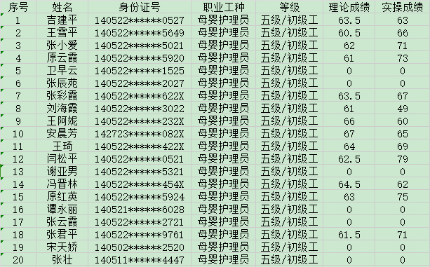 晉城市潔霸清潔服務(wù)股份有限公司職業(yè)技能等級認(rèn)定中心現(xiàn)將2024年10月14日認(rèn)定人員成績公示如下:
