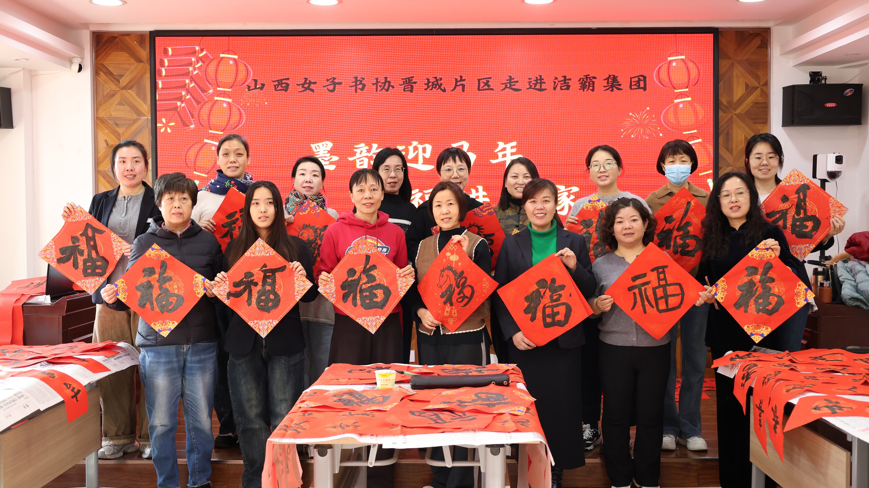 新春將至,年味漸濃。為弘揚(yáng)中華優(yōu)秀傳統(tǒng)文化,營(yíng)造歡樂、文明、祥和的節(jié)日氛圍,2月11日,在山西省女子書法家協(xié)會(huì)副主席、晉城片區(qū)負(fù)責(zé)人賀麗霞的組織帶領(lǐng)下,省女子書協(xié)的書家們走進(jìn)山西潔霸開展“迎新春、寫春聯(lián)、送祝!蔽幕M(jìn)企業(yè)活動(dòng),為集團(tuán)員工送上新春的溫暖與祝福。